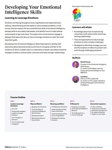 Developing Your Emotional Intelligence Skills helps learners develop self- awareness about personal emotions and how to recognize and flex to the emotions of others.